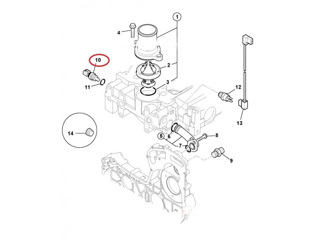 Čidlo teploty vody JCB 3CX 4CX PERKINS RE RG